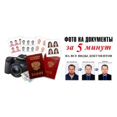 Фото на все виды документов, срочно. 3*4, 3,5*4,5, паспорт, загран паспорт, 9*12 и т.д. Монтаж одежды, ретушь.