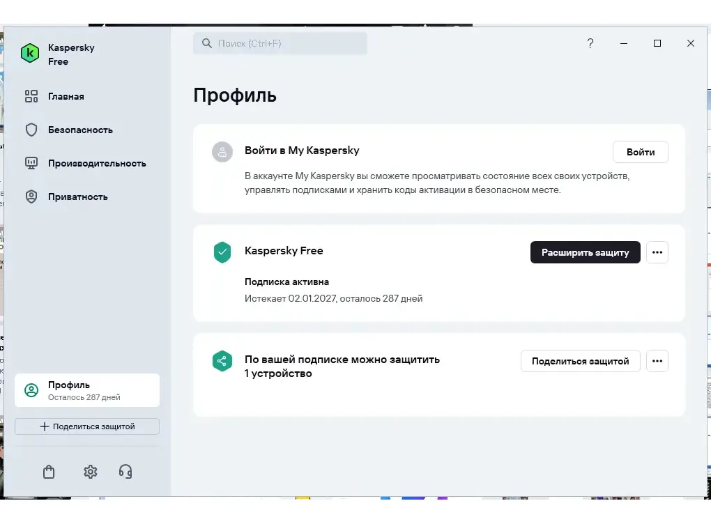 Установлю антивирусную программу Касперский - FREE версия, сроком на один год. По окончании срока подписка продлевается автоматически.